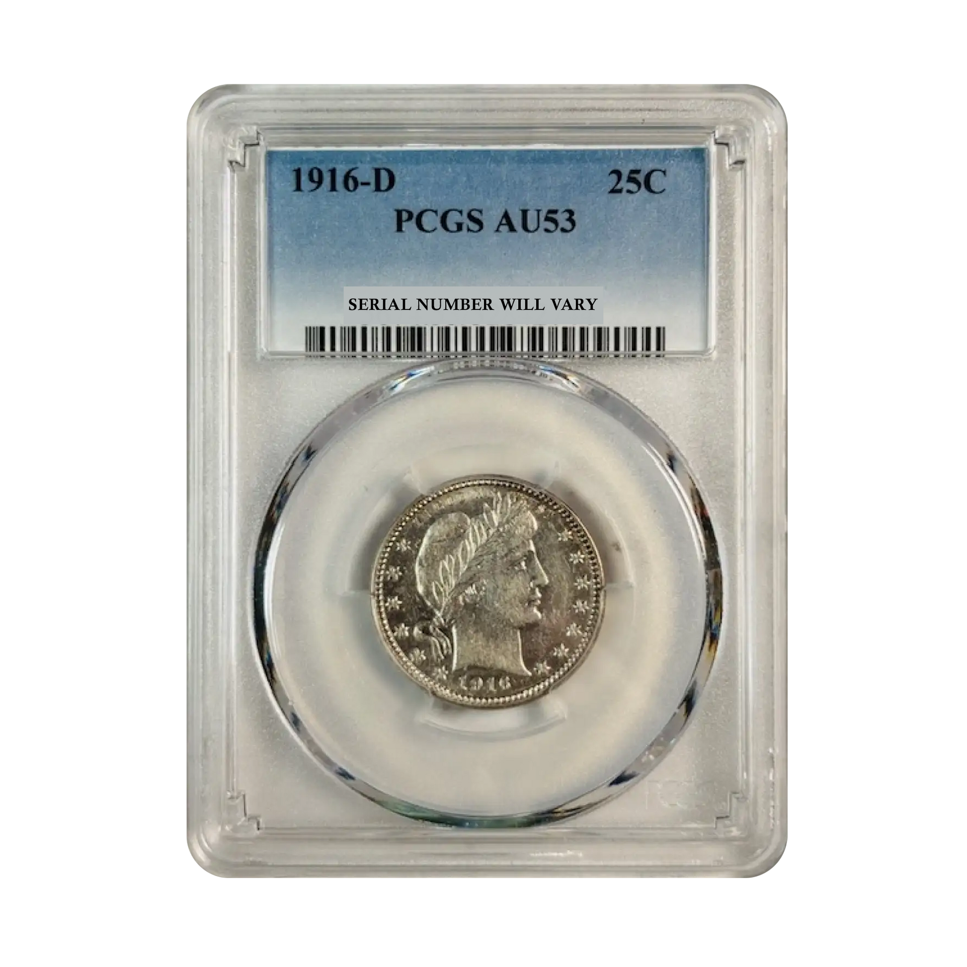 1916-D Barber Quarter Dollar graded PCGS AU53