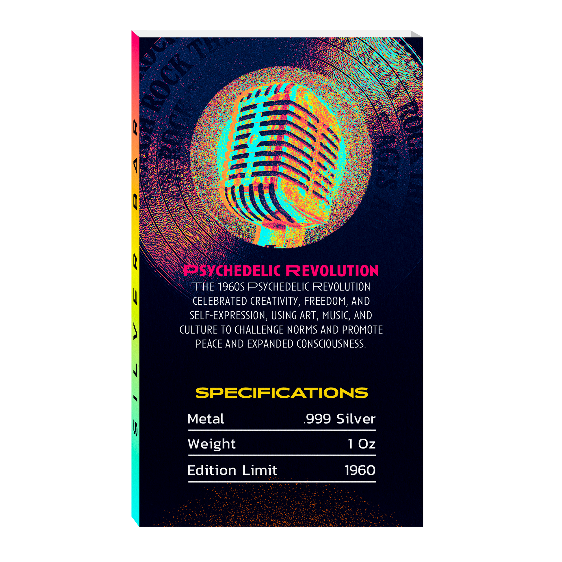 Add the Psychedelic Revolution Silver Bar to your collection today — a vibrant, mind-bending celebration of the music, movement, and magic that defined a generation.