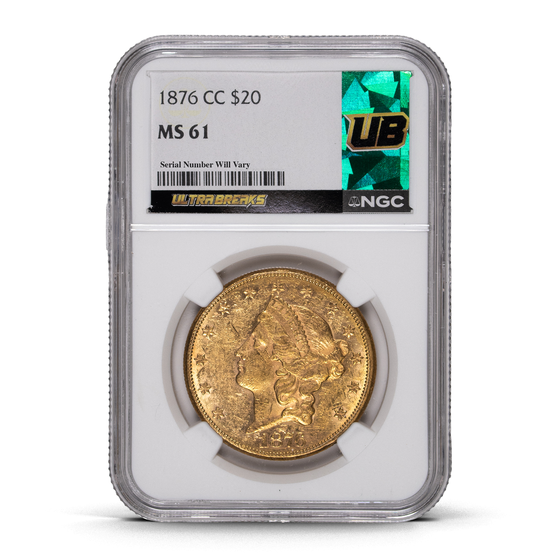 We’ve included 10 legendary $20 Carson City Liberty gold coins, nine in circulated condition (XF40–AU55) and one spectacular MS61 Nitro Label edition. This is the first time massive vintage gold has ever been offered in an UltraBreaks release.