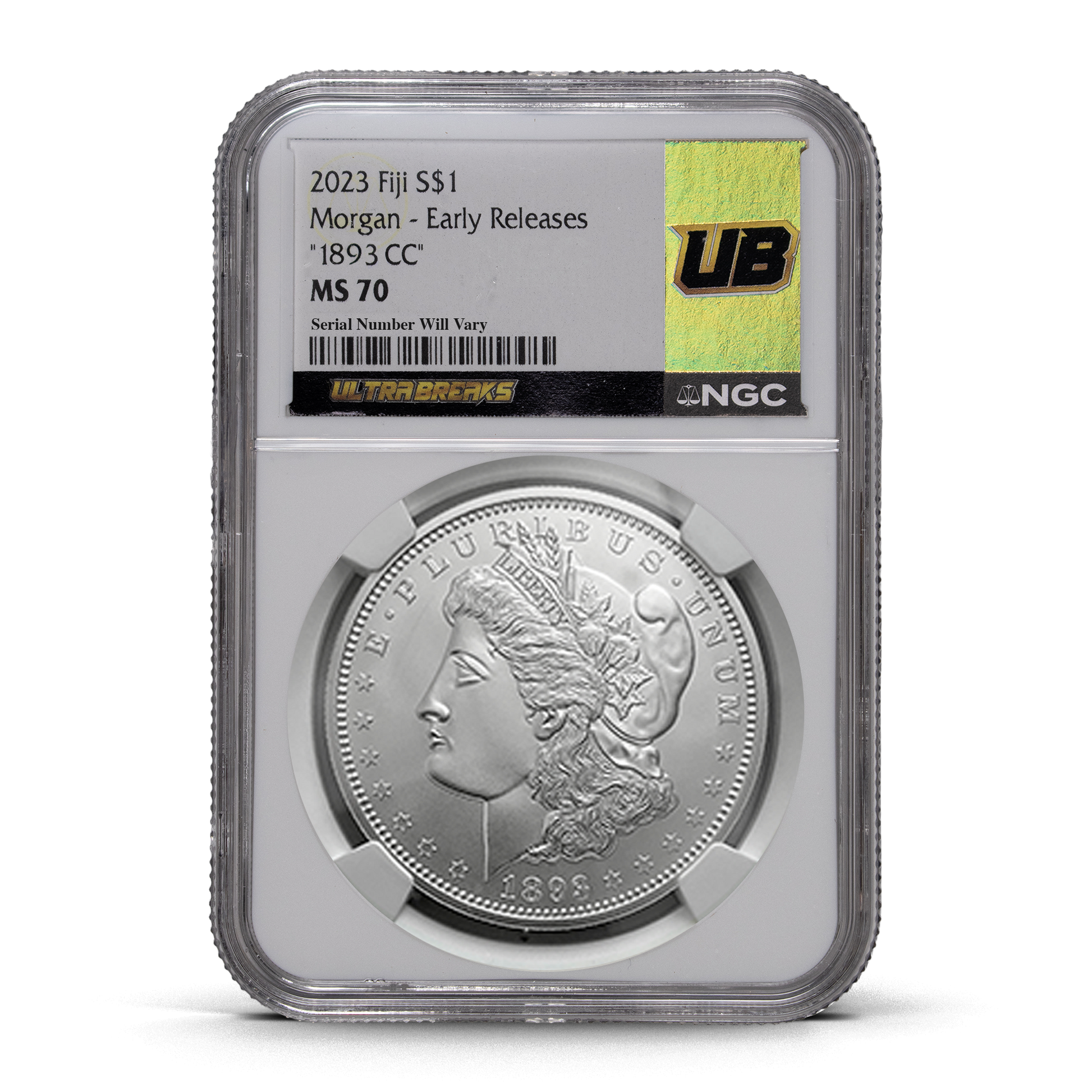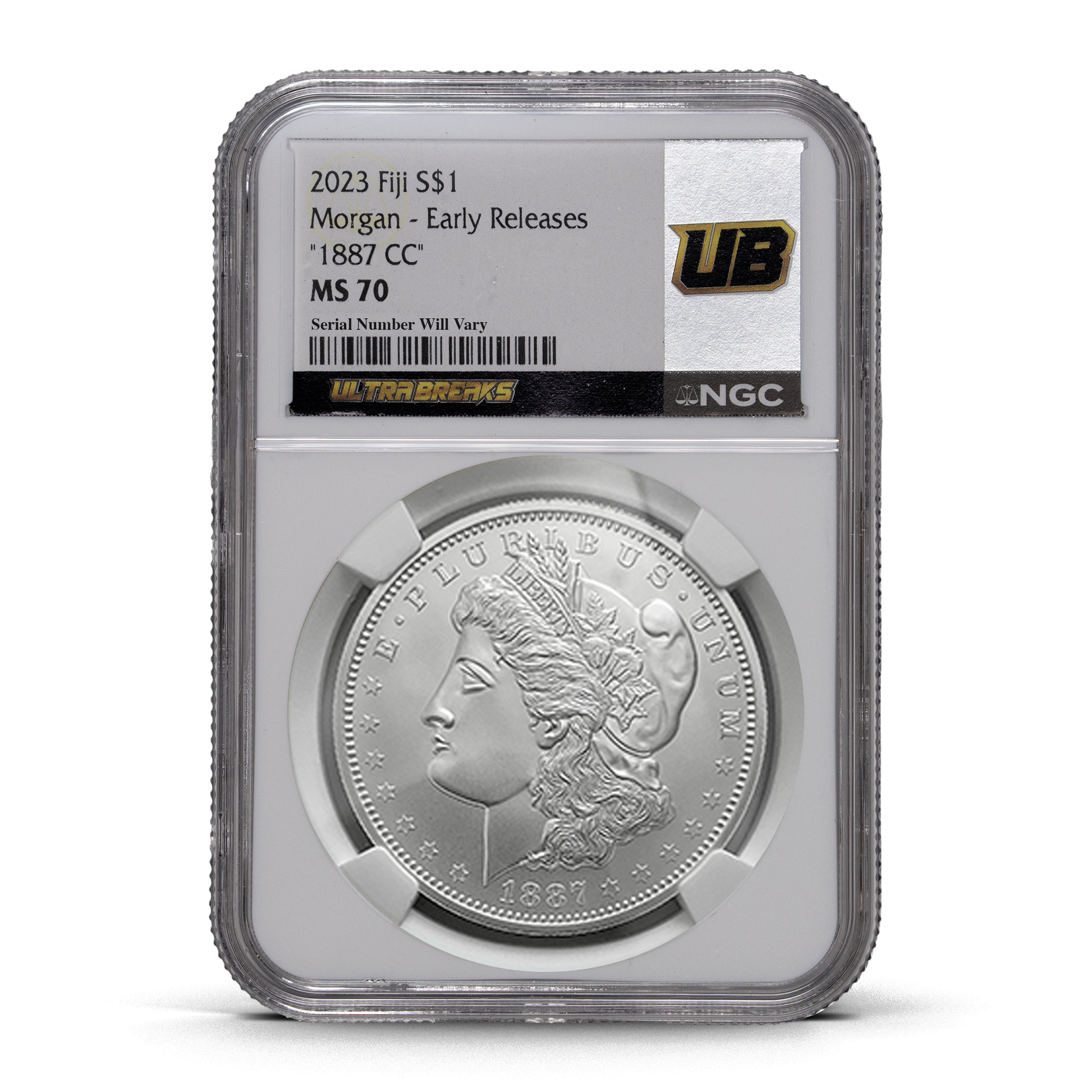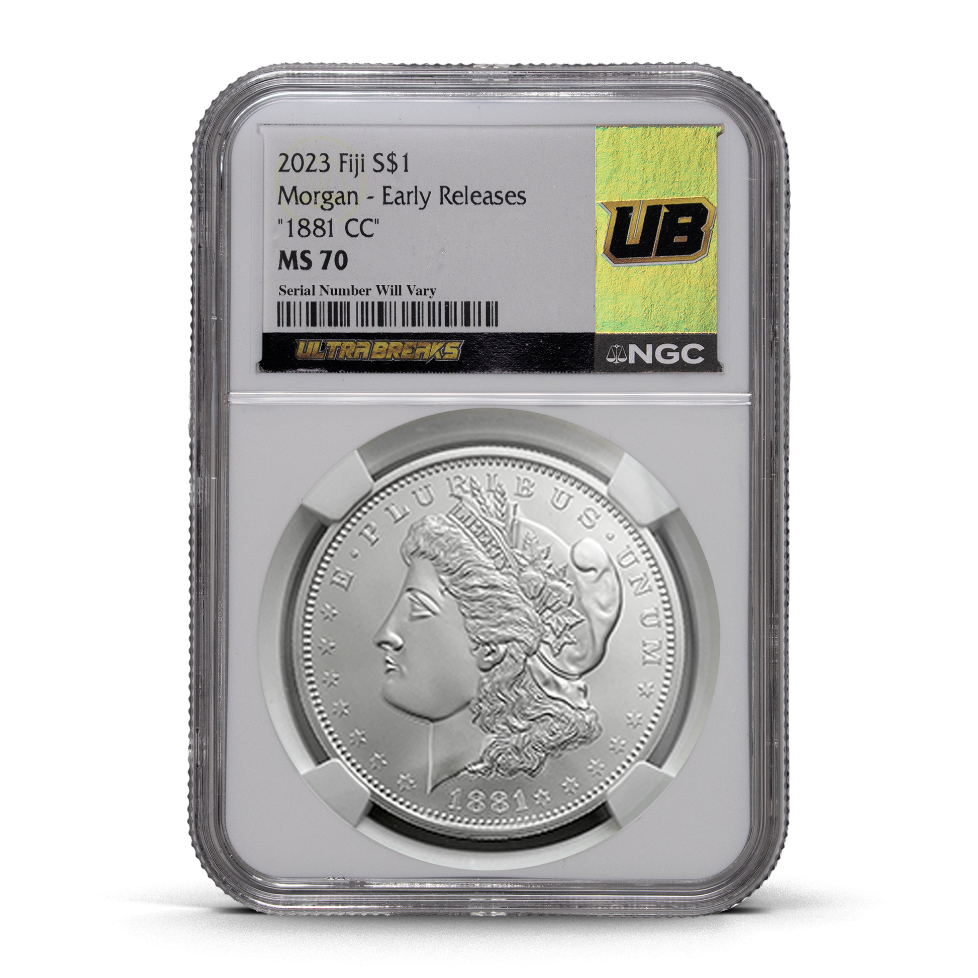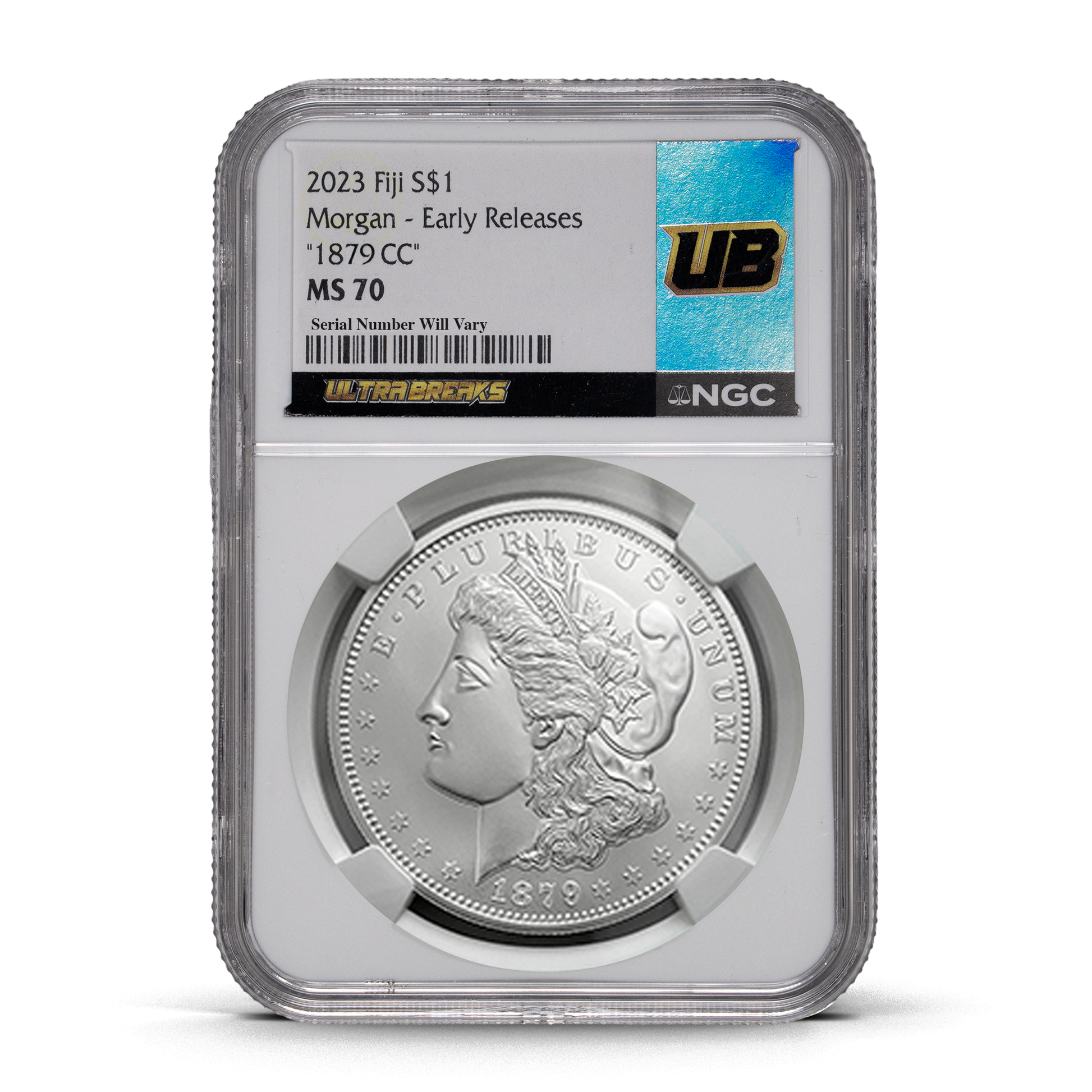 2023 Fiji Morgan Dollar Carson City Tribute Series – 125 coins for each key CC date (1878–1885, 1889–1893, plus the “lost years” 1886–1888), each graded NGC MS70